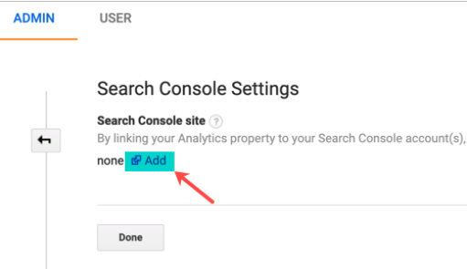 4. You will notice the ‘Search Console Settings’ as displayed. Click on the ‘Add’ a New web property link.