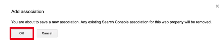 6. Choose the desired property and save your settings. Google will assist you in confirming the association, click ‘OK’ to confirm.