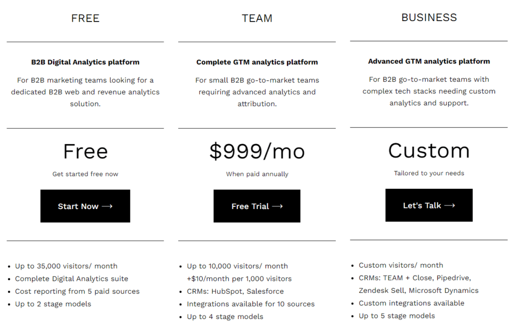 They have three pricing plans. Obviously, each serves entirely different B2B marketing teams.