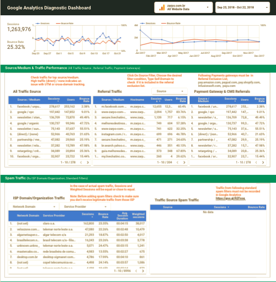 The Diagnostic Dashboard is organized into different sections based on Google Analytics reports commonly used in the audit process. Let’s go through each section step by step,