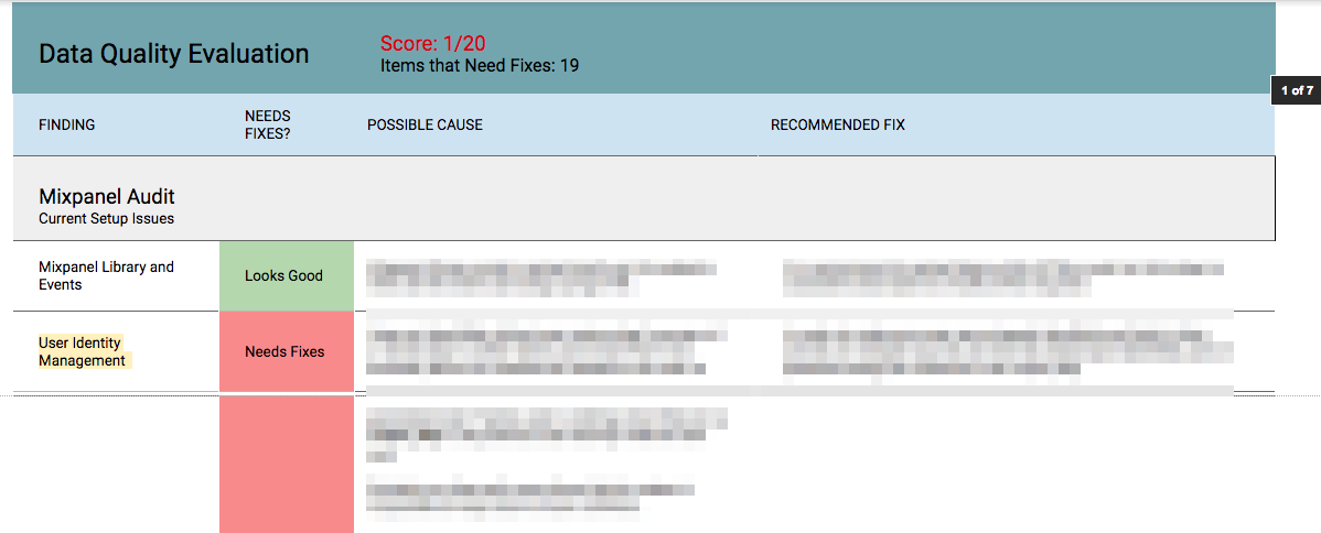 Our first step, as mentioned earlier, was to carry out a Mixpanel audit since they already had it set up on their website. We created and followed a twenty point checklist to verify data quality, configuration and setup issues.